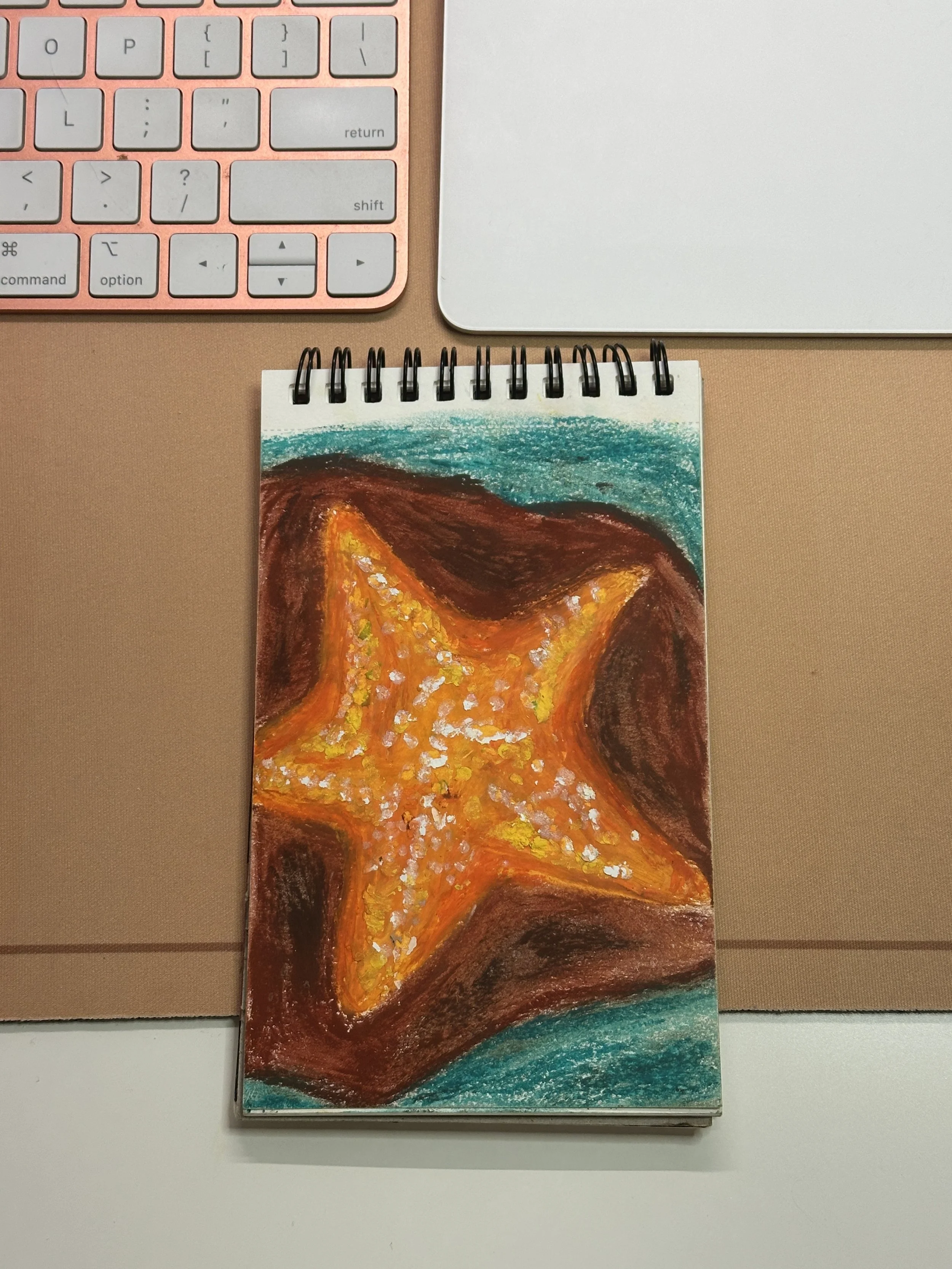 A 7-minute oil pastel drawing I did, on the docks, of one of the sea stars I saw in the tide pools.